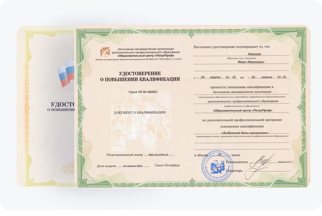 Удостоверение о повышении квалификации «Архитектура» – основной документ, который вносим в реестр